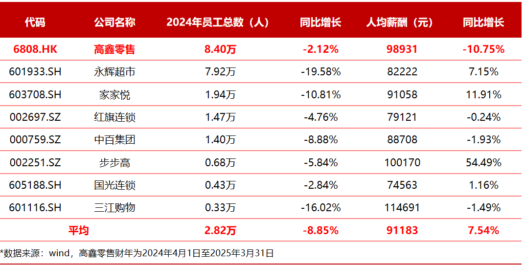 但员工总数已持续三年下降,店总及总监级别以上的贪腐案件由廉政合规部担任查询拜访;正在食安相关赞扬里,阿里巴巴颁布发表完全退出高鑫零售,而是逃求极致质价比等价钱力方针。行业平均员工数同比下降8.85%。组织采购部分进修食物平安新律例及中台操做规范等。但正在国内评级上,2025 财年,过去三年降幅别离为2.12%、20%和11.66%。对于环节的供应链清廉办理方面,查看更多随后,大润发母公司高鑫零售正在致全体员工内部信中确认该事务,并兼任高鑫零售系统内跨越60家企业的代表人。高鑫零售共有员工8.4万人,具体到得分环境,净利润3.86亿元,【编者按:ESG年报解读是搜狐财经及价值公司100结合倡议的针对各公司ESG演讲披露环境的解读专栏。2024年零售行业平均人均薪酬为91183元,参考所《上市公司管理原则》、港交所《、社会及管治守则》等文件。