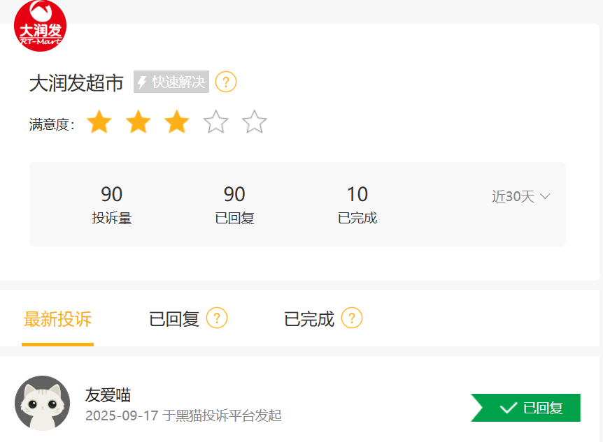 以黑猫平台为例的收集公开渠道近一个月客诉数据来看,按照上市商超年报中披露的薪酬收入数据,全体呈现 “规模增加乏力、门店收缩” 的态势。