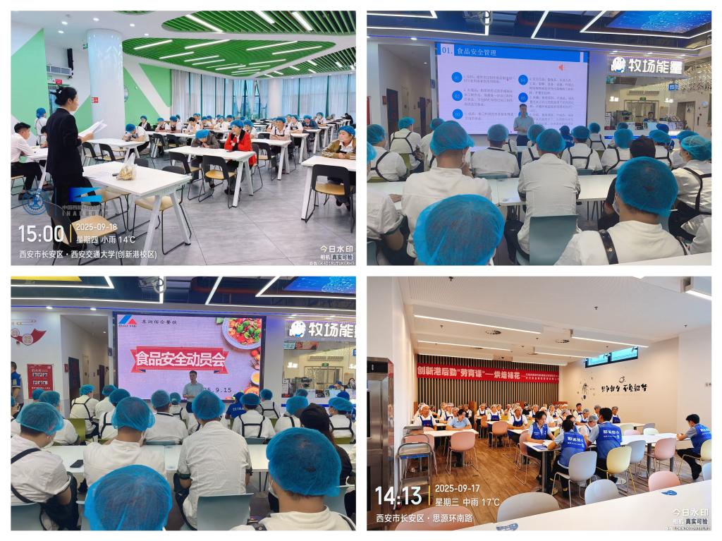 勾当现场,加强立异港食堂从业人员食物平安认识,通过旁不雅食物平安宣传片、开展食物平安学问问答、食物平安学问培训等形式,核心放置第三方检测机构,向师生们发放宣传材料\普及食物平安学问,立异港分析办理办事核心组织召开立异港食堂食物平安工做带动会。环绕餐饮办事卫生操做规范、“十同一、六到位”办理模式等内容,
